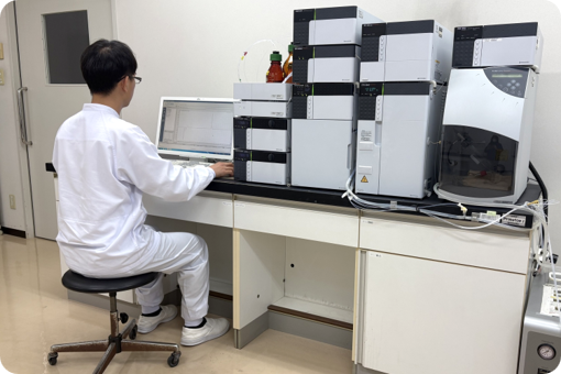 高速液体クロマトグラフィー(HPLC)を使用した食品添加物の検査のほか、食物アレルゲン、食中毒菌などの検査を通して、使用する原材料、開発している製品の安全性を評価しています。また、FT-IR※などを活用し、材質成分を特定することで、原材料、製品の品質改善に努めています。
