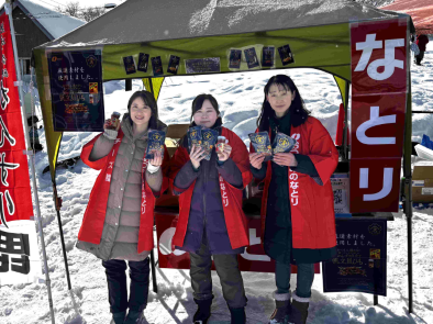 大寒の日に行う、かんずりの雪さらしイベントに参加し、新製品のサンプリングを行いました。
