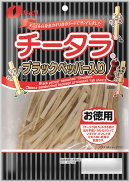 当社の「チータラ」は、プレーン・カマンベール入り・ブラックペッパー入りの3種類のフレーバーがあり、その日の気分やシーンに合わせてお楽しみいただけます。